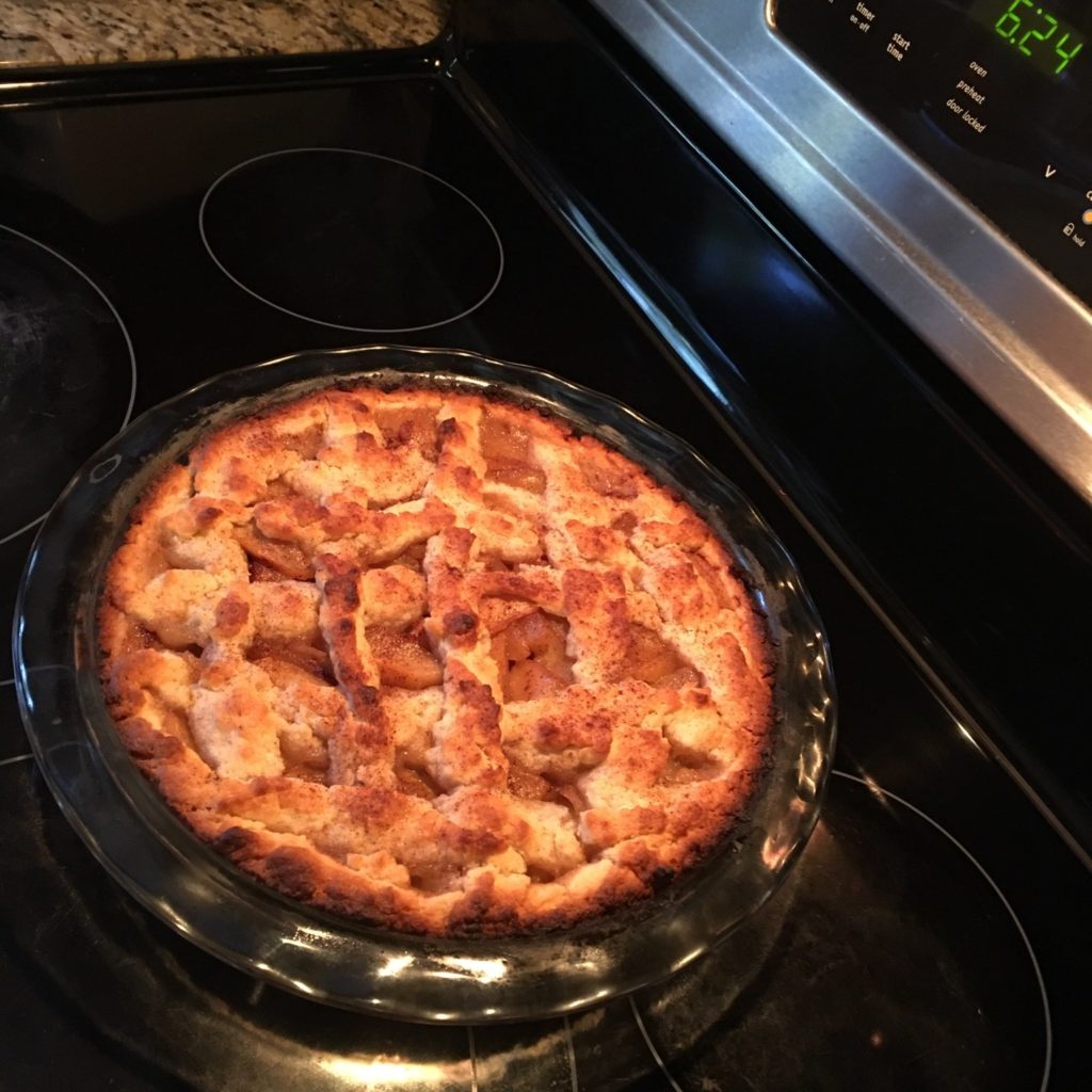 Ingredients: 2 cups flour, 1/2 cup sugar, 1 tbs salt, 1 tbs cinnamon, 3/4 cup shortening (butter), 6 tbs ice water